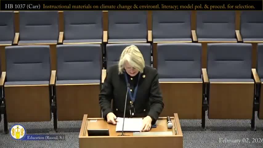 The House K‑12 subcommittee on Feb. 3 reported House Bill 1037, which would direct the Department of Education to create materials for local school boards on environmental education and literacy. Delegate Carr, the bill’s patron, told the committee the measure would “promote environmental literacy” to prepare students for a changing climate and to strengthen STEM and workforce readiness.