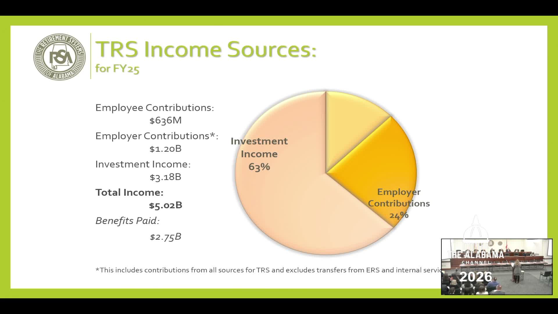 Representatives from the Retirement Systems explained to committee members that the Teachers’ Retirement System (TRS) funded ratio has fallen from near 100% in 2000 to roughly 66% in the most recent actuarial valuation.