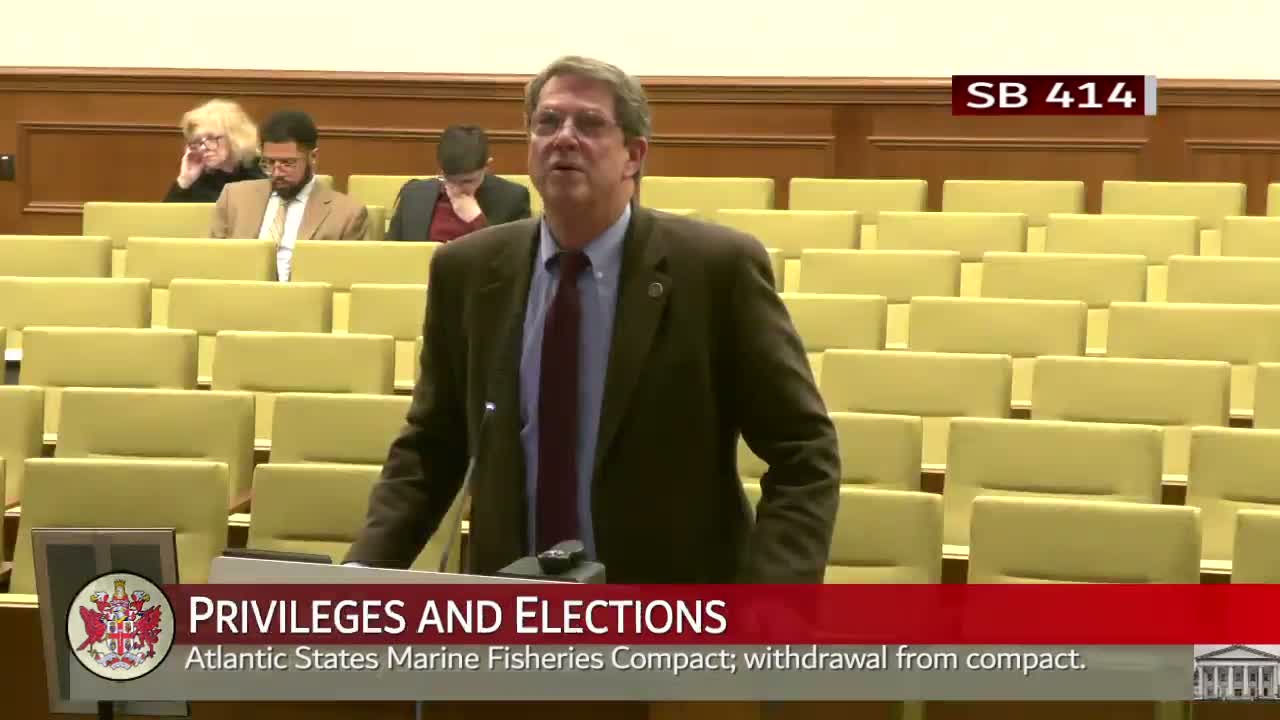 Senator Stewart told the committee Virginia is being treated unfairly within the Atlantic States Marine Fisheries Commission, citing near-40% cuts to menhaden quotas that risk local jobs; conservation groups urged remaining in the compact while the committee moved to refer the matter to finance for study.