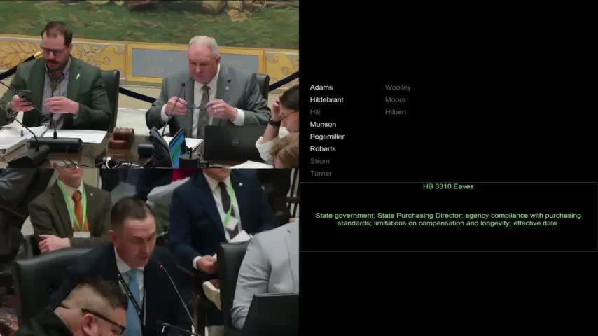Representative Eaves’ HB 3310, described as a Government Accountability and Budget Transparency Act, passed committee on a voice vote with '8 ayes' recorded; sponsor said it strengthens procurement oversight and timely payment to contractors.