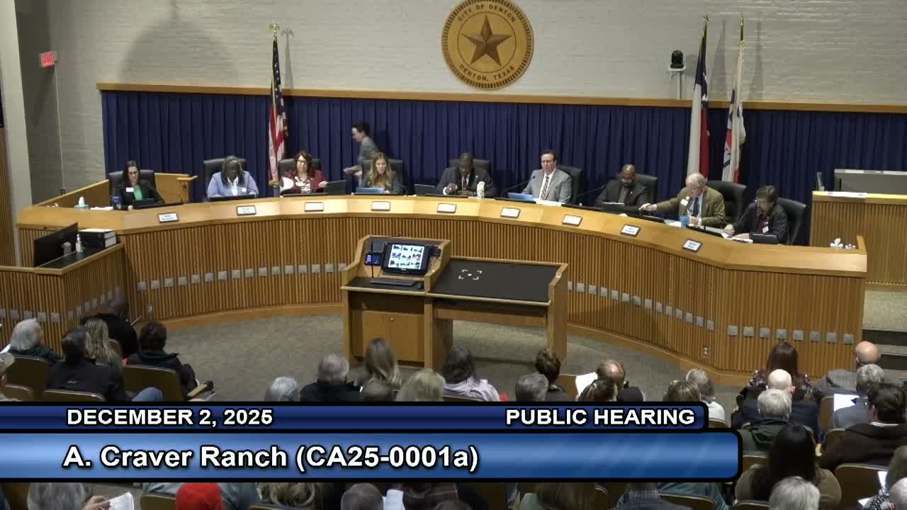After hours of public testimony and debate, the Denton City Council approved a package of zoning, mobility and municipal-management-district agreements to allow a 2,500-acre Craver Ranch master-planned community, with council split over timing, infrastructure and policy implications.