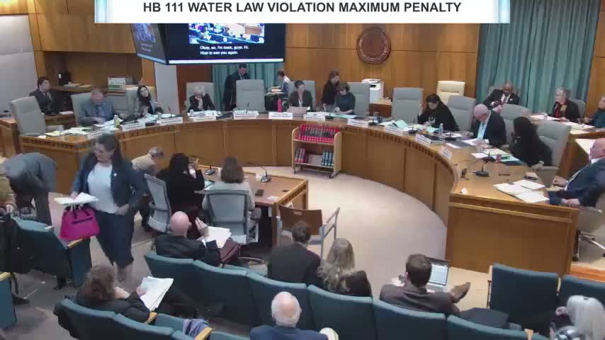 Lawmakers advanced HB111 to increase penalties for illegal water diversion, making fines accrue upon notice and setting penalties at twice the economic benefit or $25 per barrel (whichever is greater). The committee gave the bill a due‑pass recommendation after broad support from water districts, conservation groups and former state engineers.