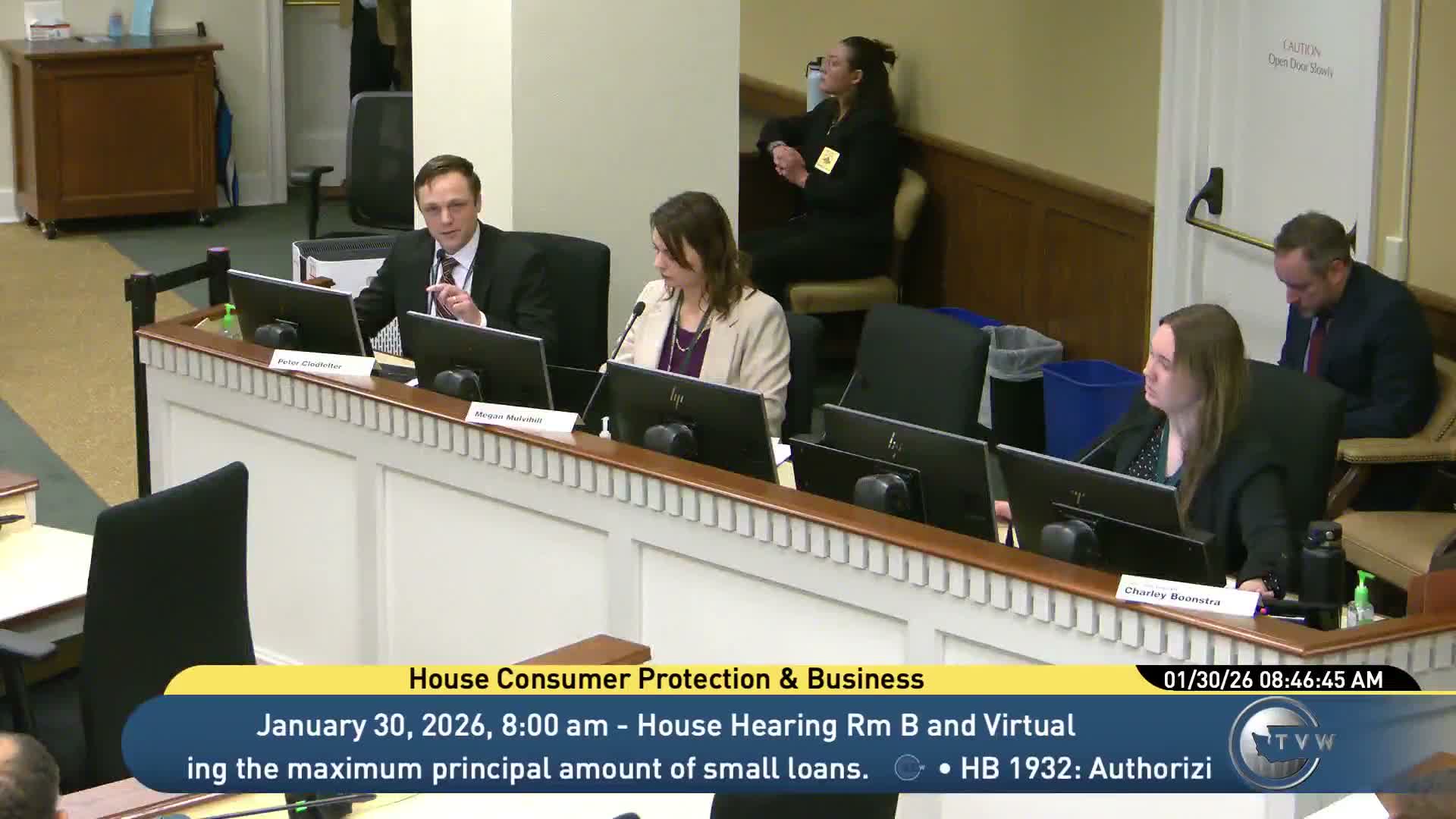 After closing the public hearing on HB 2,291, the Consumer Protection & Business Committee moved into executive‑session briefings and took committee action on multiple bills on Jan. 30.