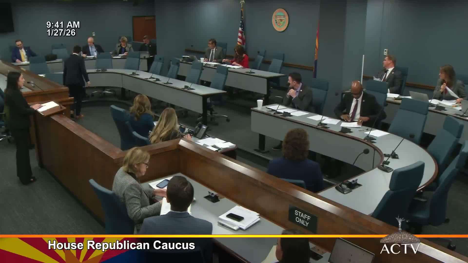 The staff presentation framed the bill as making Arizona's primary-timing rules consistent with the federal 2022 changes and clearing up procedures for challengers and electronic petition forms. The bill sponsor said negotiations on details remain ongoing and the caucus may see amendments as the measure moves through the process.