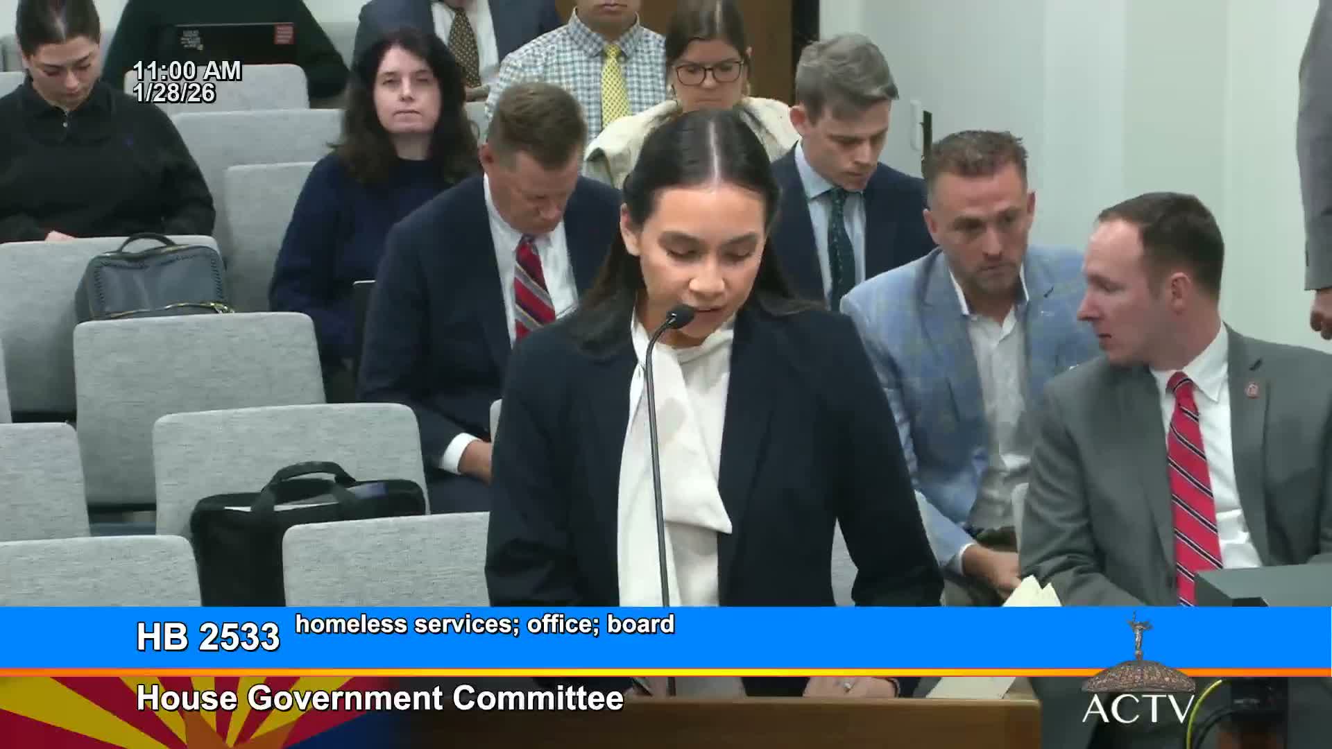 House Bill 2533, which would establish an Office of Homeless Services, an Arizona Homeless Services Board, an ombudsman, and a Property Loss Homelessness Compensation Fund, received a due‑pass recommendation from the House Government Committee on Jan. 27 after extensive testimony.