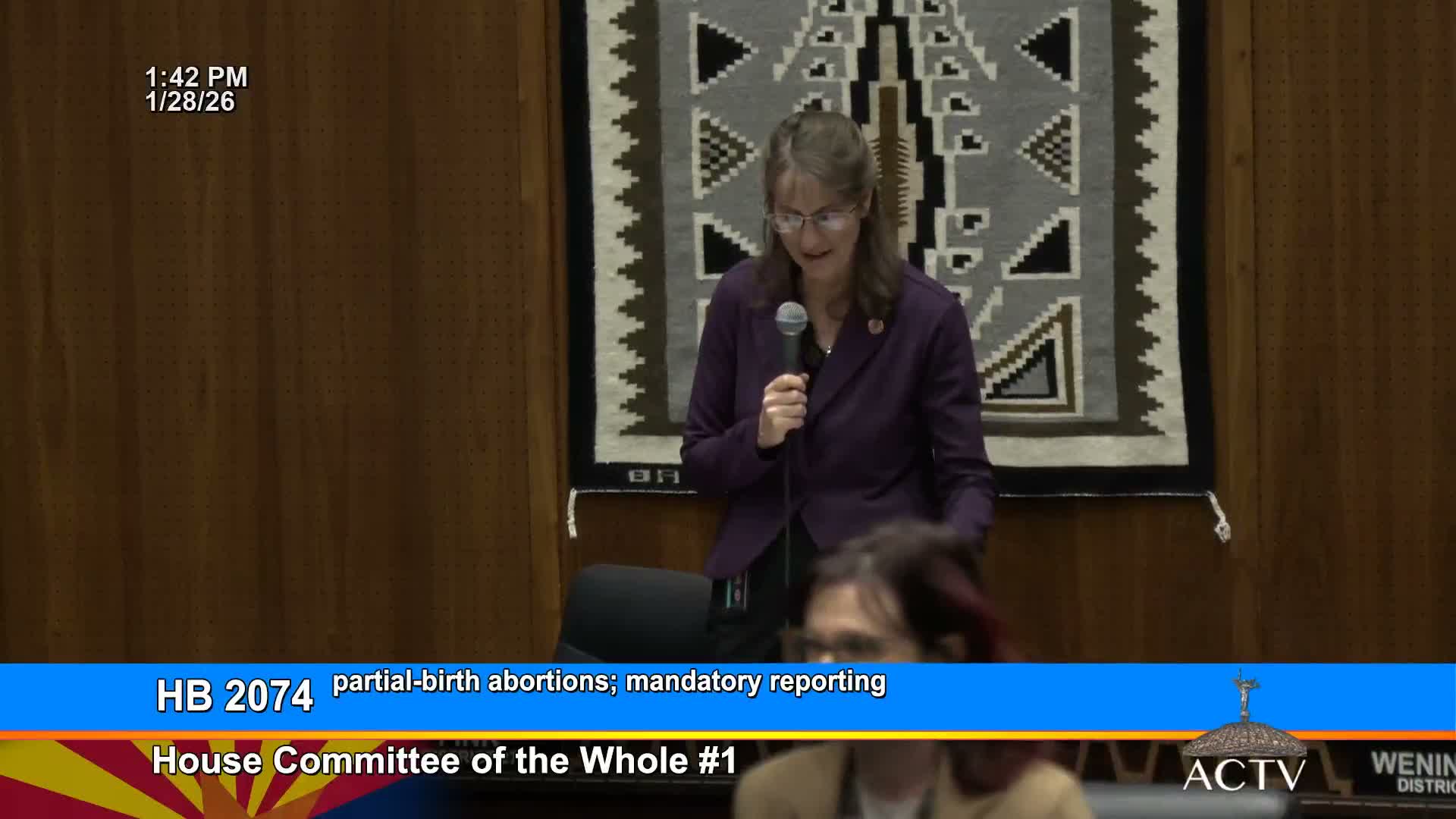 During a Committee of the Whole on Jan. 28, 2026, lawmakers debated House Bill 2074, which sponsors say expands mandatory reporting tied to an existing Arizona ban on partial-birth abortion; opponents called the bill punitive toward medical staff and women. The committee recommended the bill 'do pass' as amended and referred it to engrossing.