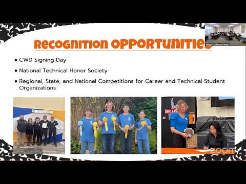 The presentation stressed that many courses lead to industry certifications the division pays for, including OSHA, ServSafe, Microsoft assessments and welding credentials. “Our agriculture mechanics team placed number 1 in the nation,” Garrett said, and the division is using state and Perkins funding to cover certification costs so students leave high school employable or credentialed for further training.