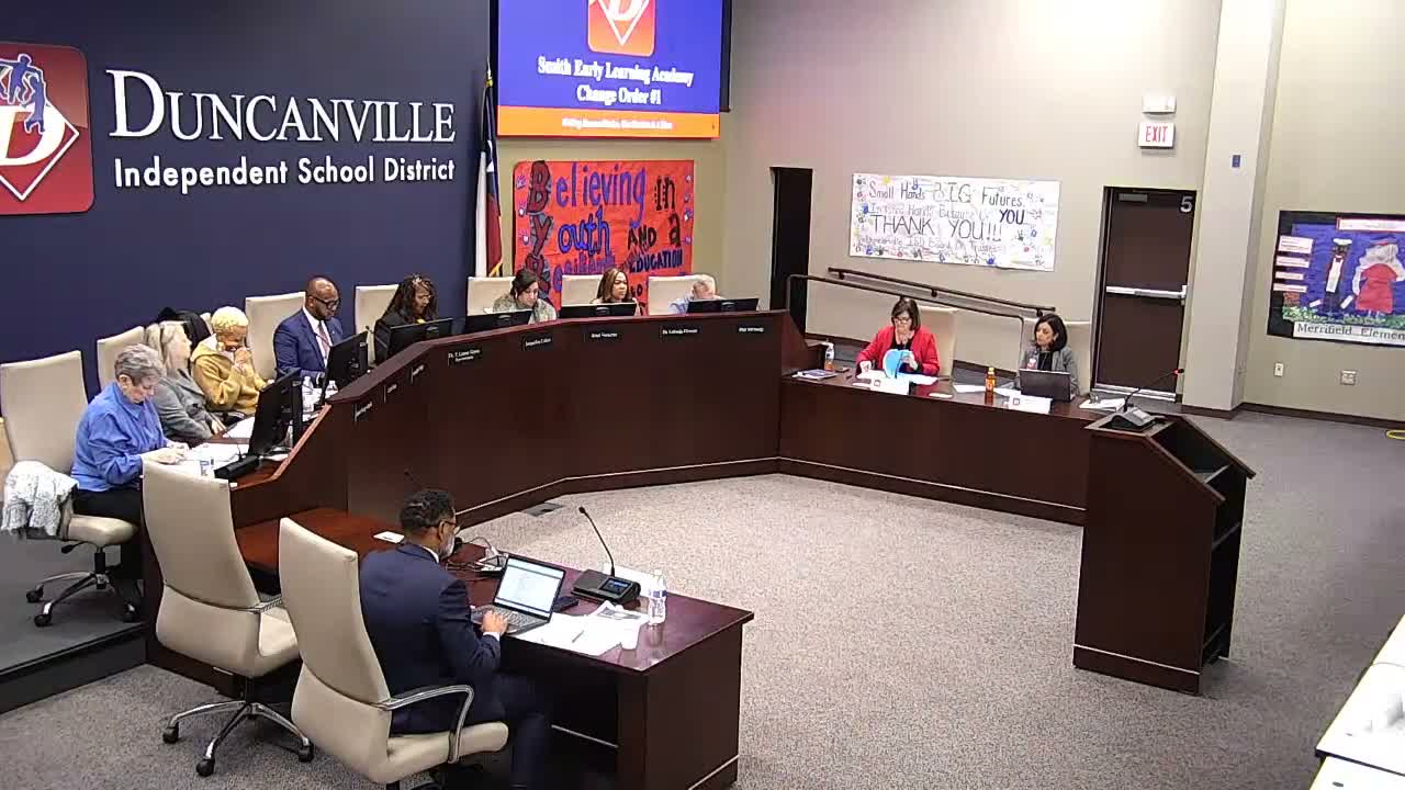 Duncanville ISD approved a multi-campus contract with Tutor by Teachers to deliver virtual small-group and 1-on-1 tutoring during WIN time; administration said the program will use Title I and rollover Title I funds and will be monitored via pre/post tests, MAP and weekly exit tickets.