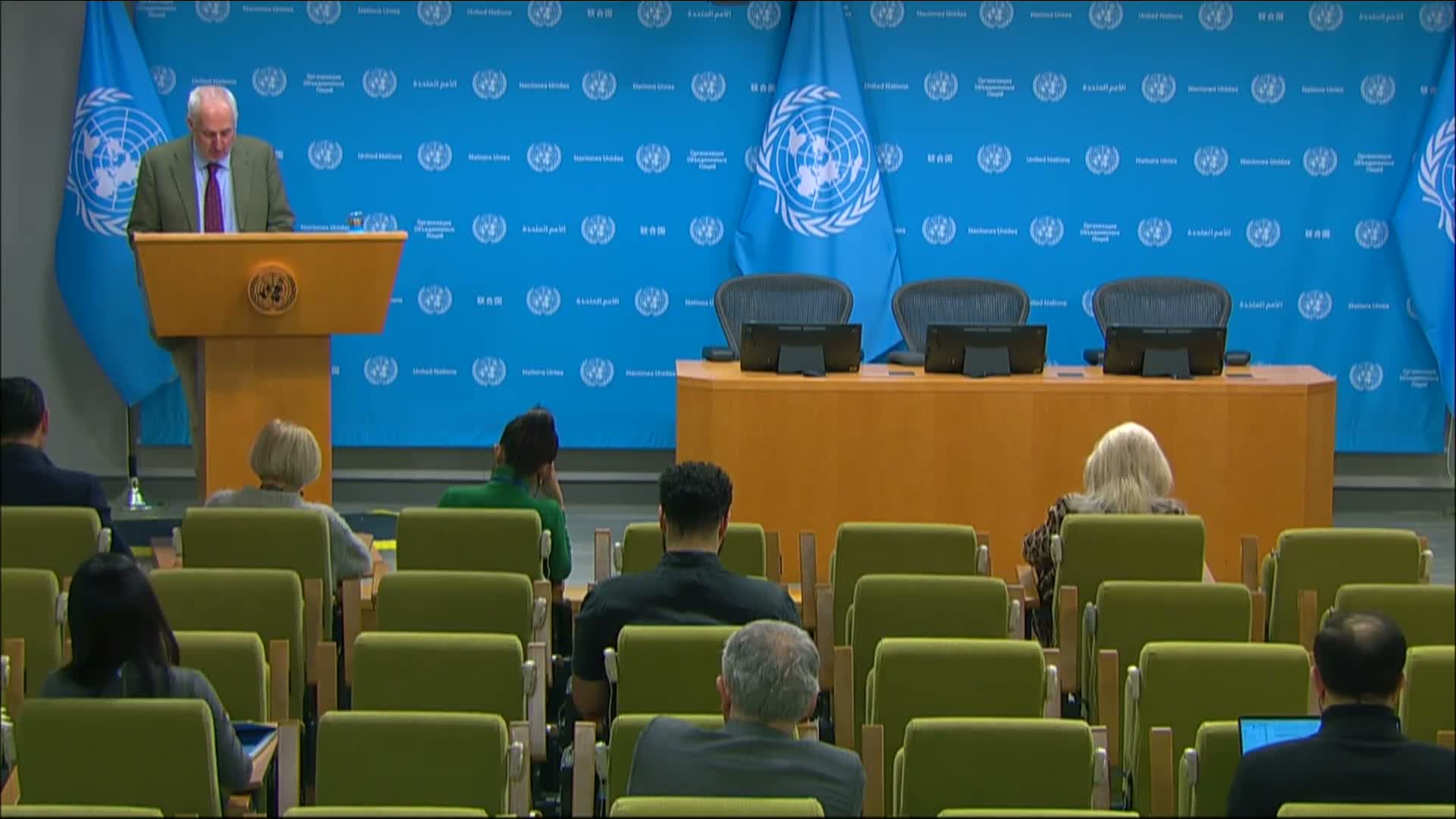The United Nations spokesperson used the briefing to summarize humanitarian crises beyond Gaza and to press for donor support.