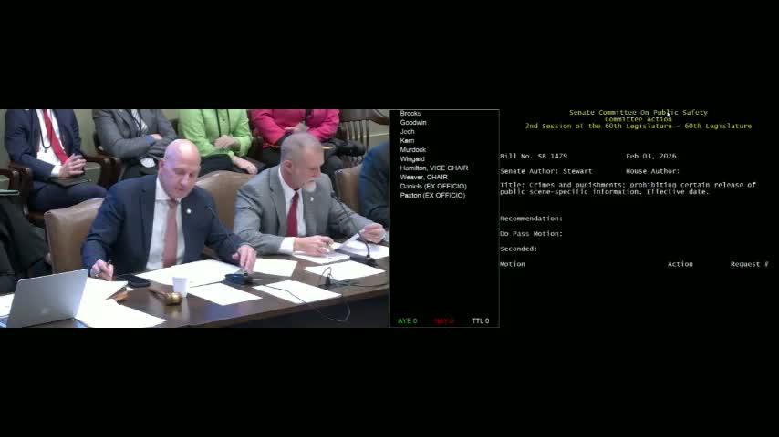 The Senate Public Safety Committee passed Senate Bill 1479 on a 6–2 vote. The bill, offered by Senator Stewart, would bar first responders and other scene‑support personnel from publicly releasing crime- or collision-scene photos or footage until the investigating agency authorizes it; supporters cited family privacy and investigative risks while some members sought narrower language and clarified exceptions.
