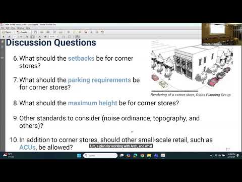 On scope, commissioners debated whether a ‘‘corner store’’ label should be limited to corner lots or used as shorthand for small‑scale neighborhood retail anywhere on a block. Some members favored a flexible approach that would allow ACUs (smaller, accessory commercial spaces tied to a residence) more broadly while limiting larger neighborhood stores to specific locations or design standards. Staff identified several implementation paths: expand neighborhood business zones in targeted locations; allow ACUs as a use within residential zones with size and operational limits; or adopt the state minimums if HB 1175 becomes law and then decide whether to go further.