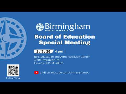 The Birmingham Public Schools Board of Education met in closed session during a Feb. 3, 2026, special meeting to consider a student disciplinary appeal requested in writing by the student’s family. After returning to open session the board voted to affirm the disciplinary decision.