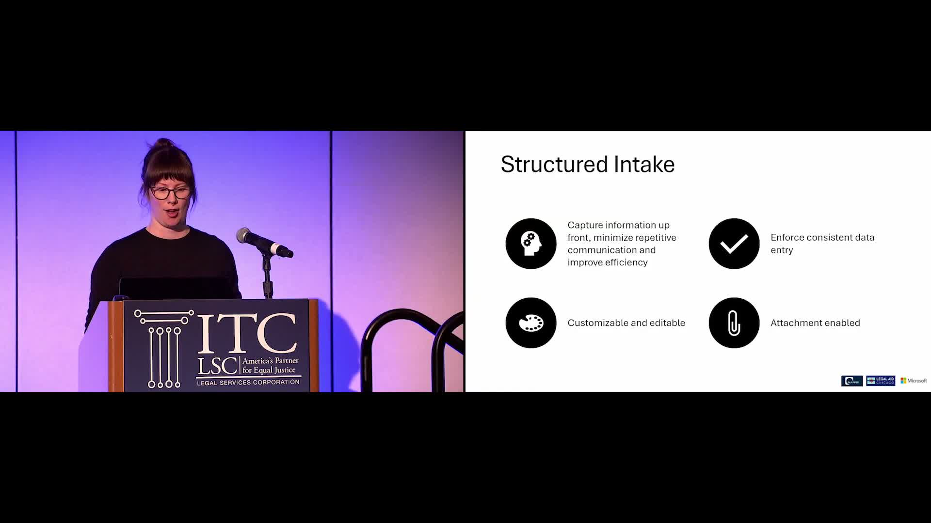 Erin Latier of Microsoft's productivity solutions team demonstrated how basic components of the Microsoft 365 stack can be applied to legal-aid workflows.