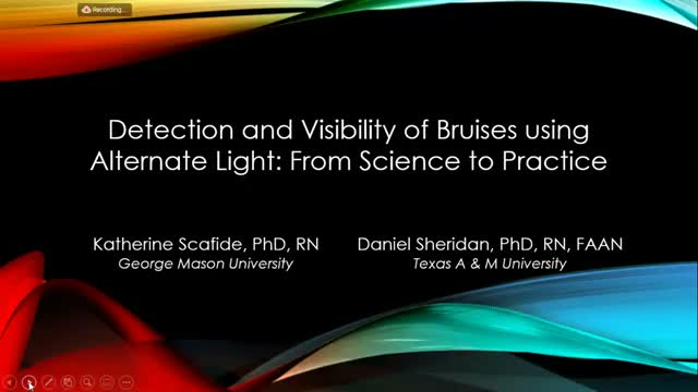 In the presentation, Dr. Catherine Scafidi of George Mason University and Dr. Daniel Sheridan of Texas A&M University described a randomized, longitudinal study funded by the National Institute of Justice that followed experimentally induced bruises on research participants across repeated visits. "The odds of detecting a bruise using 415 nanometers violet light with a yellow filter was 5 times greater than white light," Scafidi said, and she reported a roughly fourfold improvement at 450 nanometers.