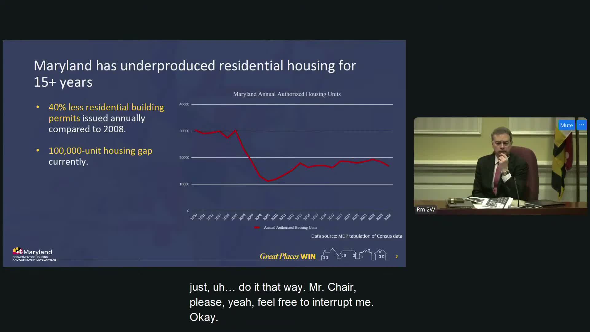 Secretary Jake Day told the Education, Energy, and the Environment Committee that Maryland issues about 40% fewer residential permits than in 2008, contributing to an estimated 100,000-unit deficit. He urged state and local reforms: enabling smaller housing types, streamlining permitting, and aligning financing tools.