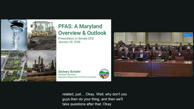 Zachary Schafer, assistant secretary at the Maryland Department of the Environment, told the Education, Energy, and the Environment Committee that Maryland is pursuing a three‑part strategy to address per‑ and polyfluoroalkyl substances: prevent releases, reduce high‑risk exposures (drinking water, fish, farms), and hold polluters accountable. "PFAS are a very large family of about 15,000 chemicals," Schafer said, noting they persist in the environment and are found in nearly every American's blood.