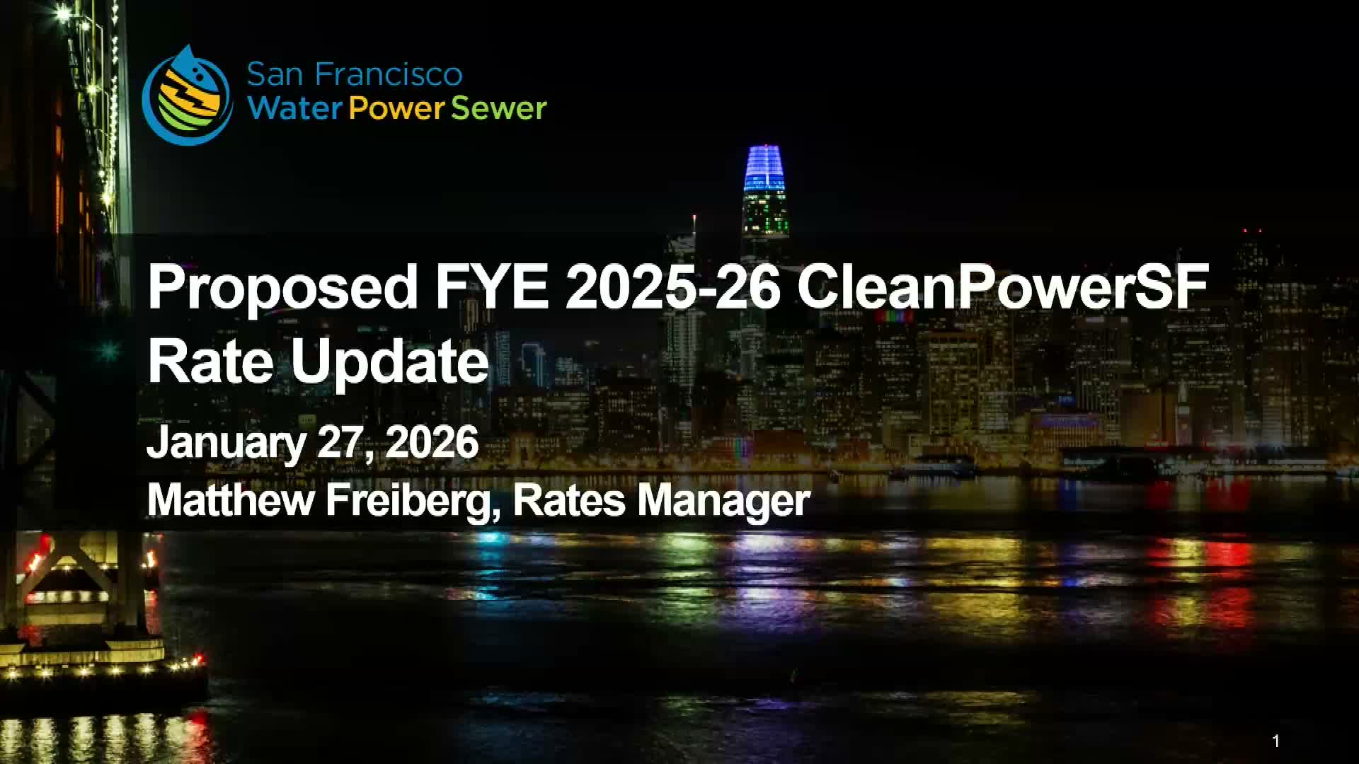 Matthew Fryberg, Clean Power SF rates manager, told commissioners that PG&E’s January delivery increases and a spike in the PCIA have pushed retail bills higher and created an opportunity for Clean Power SF to use stronger-than-expected fund balances to reduce generation rates for customers. "The proposal we're bringing for you today is to be effective on March 1: a 25% decrease in residential and large commercial rates and a 20% decrease for all other customer classes," Fryberg said.