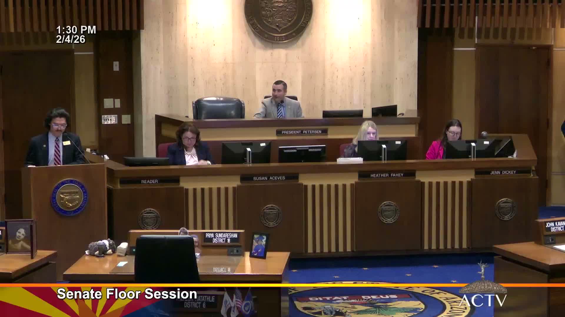 The Arizona State Senate called a long second-reading calendar, announced committee meeting times and adjourned the floor session on Feb. 4, 2026.
