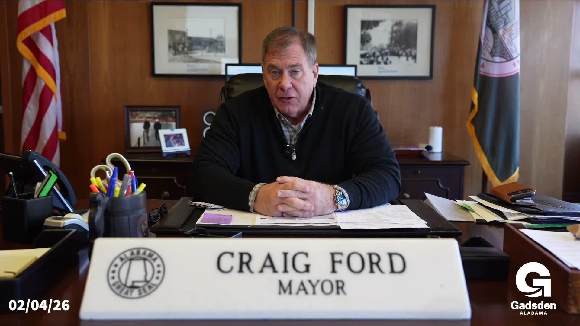 Mayor Craig Ford said the city secured $5–$6 million toward a $20 million South Gadsden drainage project, awarded a shell contract for the new Gadsden Athletic Center, and received an appropriation for Broad Street Bridge rehabilitation that will take about 18 months to process.