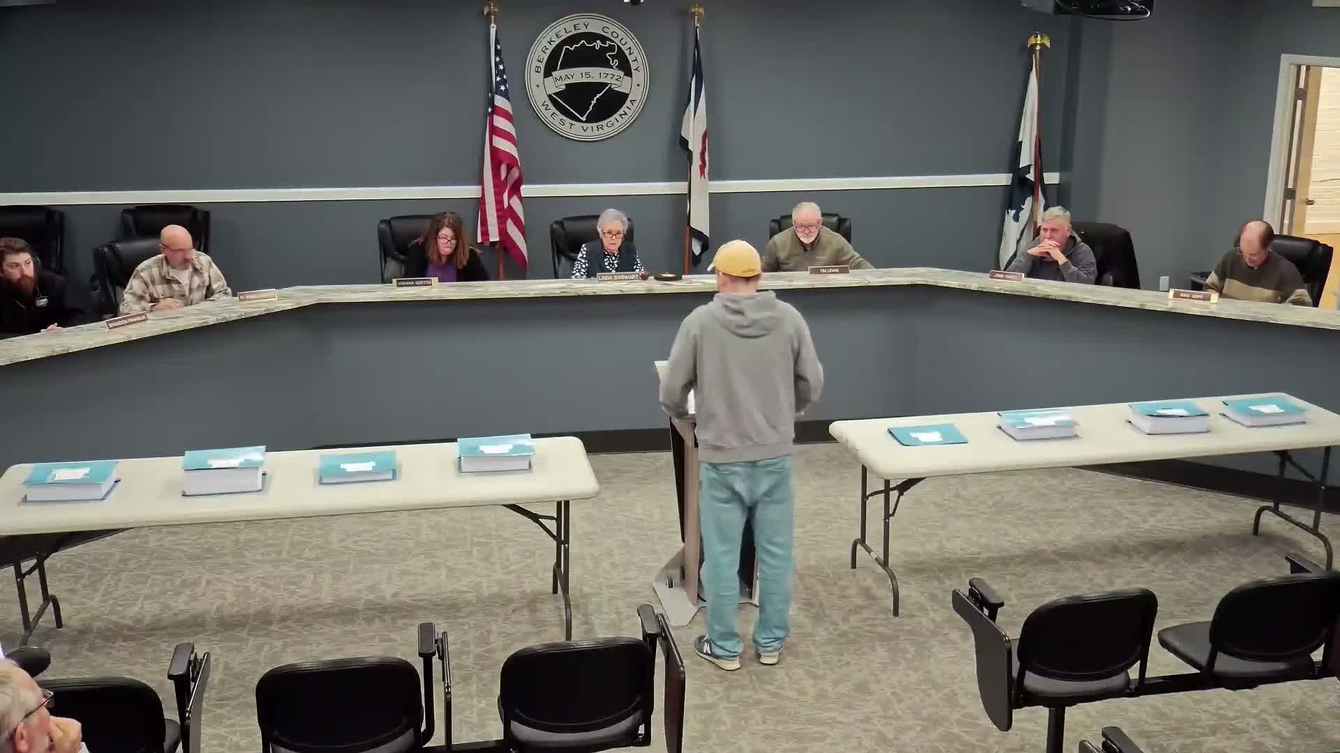 Corey Rodriguez of Martinsburg addressed the Berkeley County Planning Commission during the meeting’s public-comment period, saying an immigration enforcement action earlier in January led to workers fleeing through Tuscarora Creek into his development and that “armed ICE officers” chased them across several properties. Rodriguez told the commission he does not want federal agents on his property and called for audits of developers, asking, “Who is responsible for making sure that they follow the laws?” He urged that the developer’s projects be halted and bonds pulled until the situation is clarified.