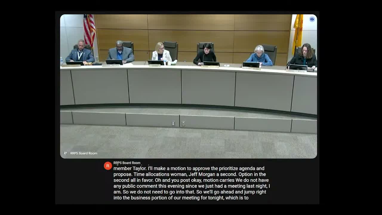 Earlier in the meeting the board also approved the prioritized agenda and proposed time allocations by motion; that procedural vote was recorded as carried by voice vote.