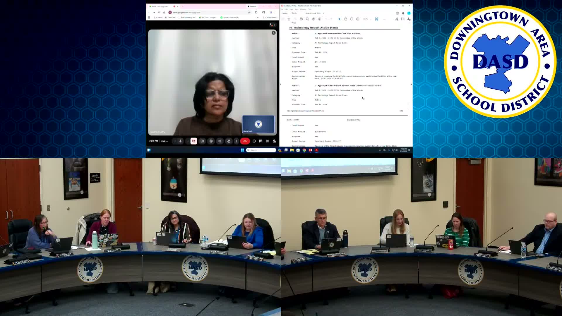 The district's technology and communications staff recommended two multi-year contracts: a five-year renewal for the district content-management/web-hosting system for $41,750 and a five-year contract for ParentSquare, a mass-communication platform, priced at $39,000 for the initial term to replace Blackboard.
