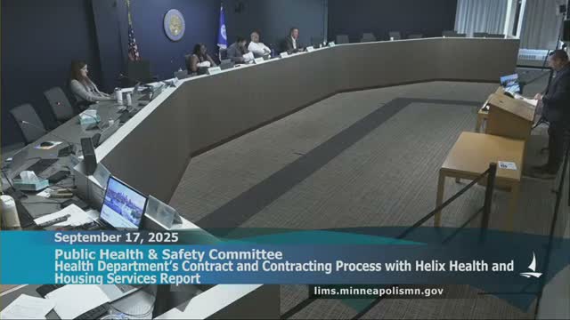 The Minneapolis City Auditor told the Public Health & Safety Committee his office found what it classified as overpayments to Helix Health and Housing Services and recommended stronger contract controls and an enterprise risk-management function to prevent recurrence.