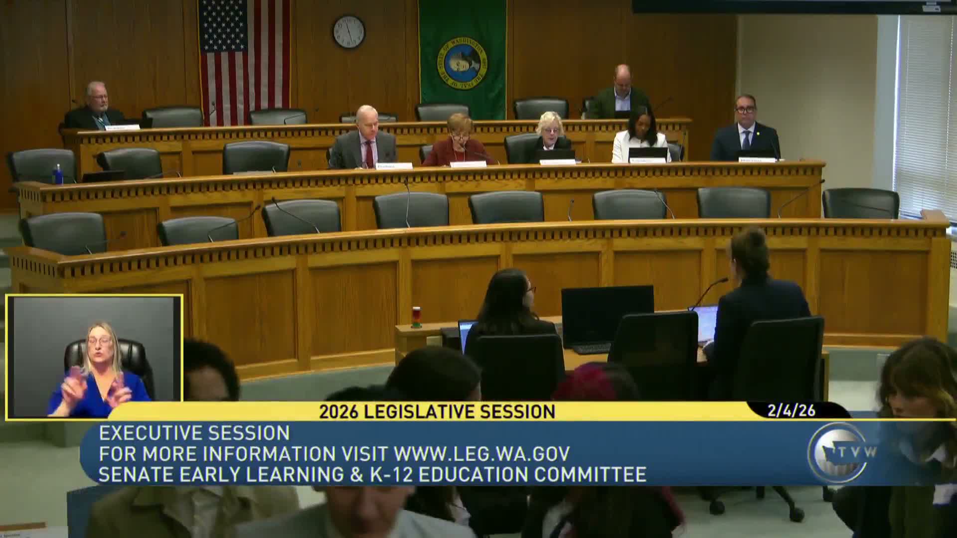 Following public testimony on SB 58‑49, the Senate Early Learning & K–12 Committee went into executive session and considered two packets of bills. Committee staff summarized each bill and the committee then adopted proposed substitutes and made recommendation votes.
