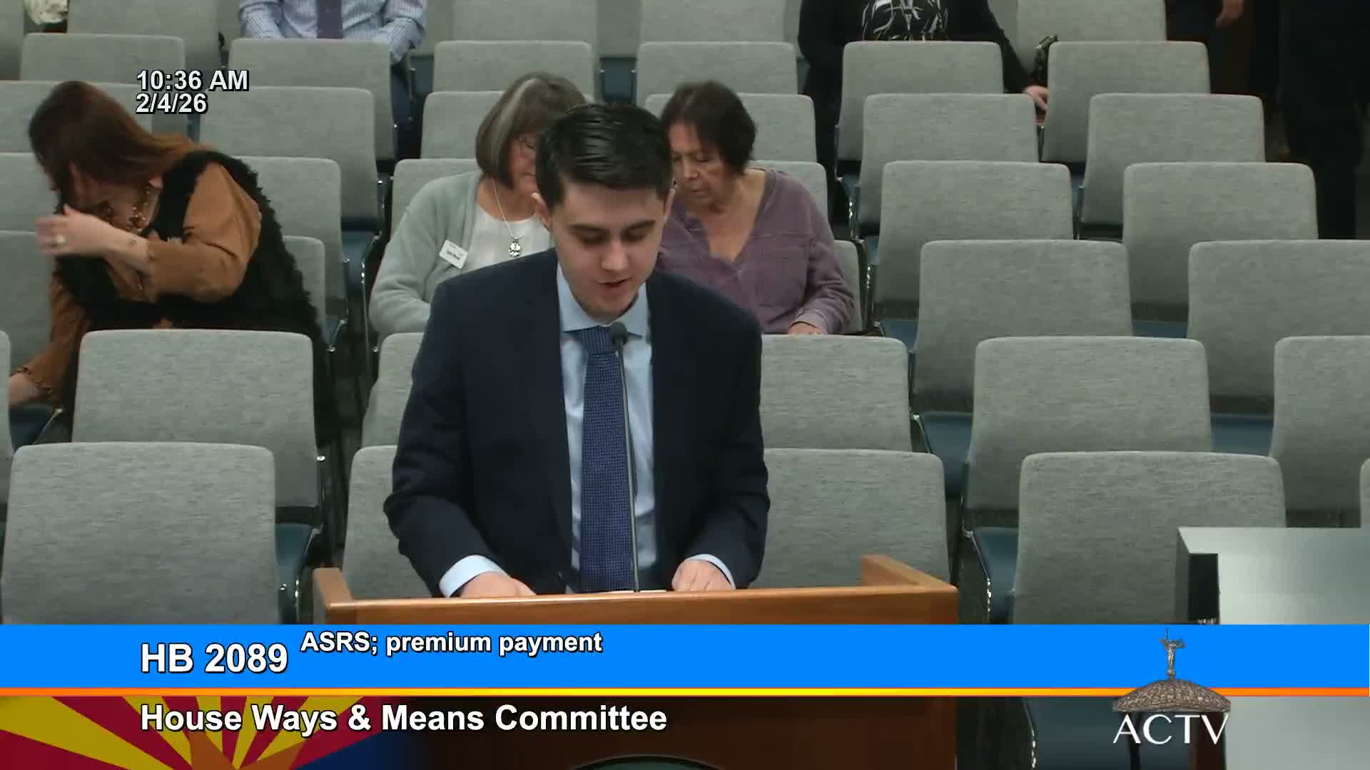 HB 20‑89: Connor Sikata (House research intern) explained the bill defines an active employee group health and accident insurance program for purposes of the Arizona State Retirement System premium benefit subsidy. Jessica Thomas, legislative liaison for ASRS, said the bill clarifies subsidy eligibility and answered member questions. The committee returned HB 20‑89 with a due‑pass recommendation, 9‑0.