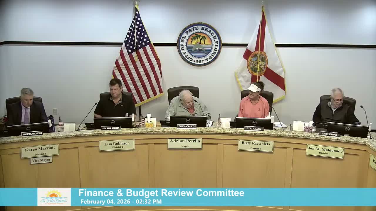 Kathleen Murray, who said she works in the city manager’s office, told the Review Committee that annual metered sales in St. Pete Beach are about $6,000,000 and the average parking transaction is $8.67. She presented a menu of options: pass through the 3% credit‑card fee to customers (staff estimated this would amount to roughly $160,000 a year, given current average transactions), add a "sunset" premium between 4 p.m. and 8 p.m. (estimated roughly $280,000 annually if raised by $1/hour), adopt a seasonal surcharge (staff estimated about $475,000 for a $1/hour addition Feb. 1–April 30), treat Fridays as weekend rates (staff estimated about $200,000), and align the county park rate with the city's rate (staff said eliminating the county‑park discount could net the city about $300,000 per year, recognizing the county and city currently split county‑park revenue 50/50).