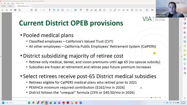 A consultant advising the district said its liability for other post-employment benefits, or OPEB, totaled about $33.1 million as of the June 30, 2024, valuation and that most of that cost is tied to pre-65 retiree medical subsidies.