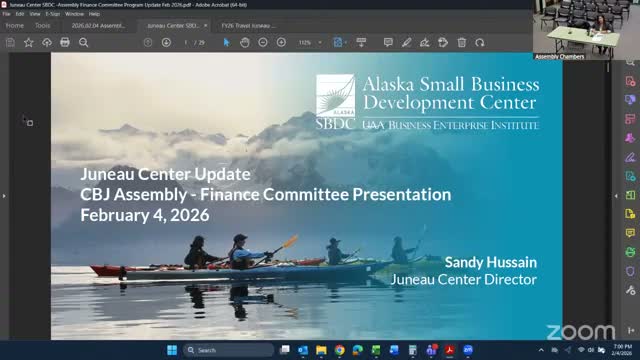 Sandy Usain, director of the Alaska Small Business Development Center’s Juneau Center, told the Assembly Finance Committee on Feb. 4 that a modest municipal contribution is catalytic: the center requests $28,500 from CBJ to meet federal match rules and to maintain a full-time local adviser who connects Juneau firms to statewide and national resources.