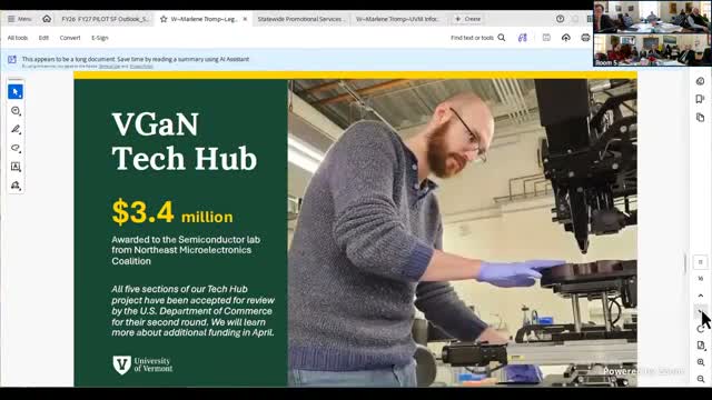 What comes next: Trump asked the committee to "keep your eyes peeled" on the VGAIN project and said grant reviews were in final stages. The presentation framed research and commercialization as both economic development and public‑health investments for Vermont.