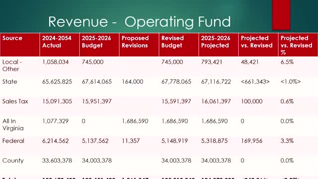 Finance staff told the Jan. 8 school board that revenues are roughly $342,000 below projection and recommended three supplemental appropriations; staff warned of a projected $10.3M funding shift tied to local composite index changes in 2028–29 and outlined plans to set aside $8.7M to soften the impact.