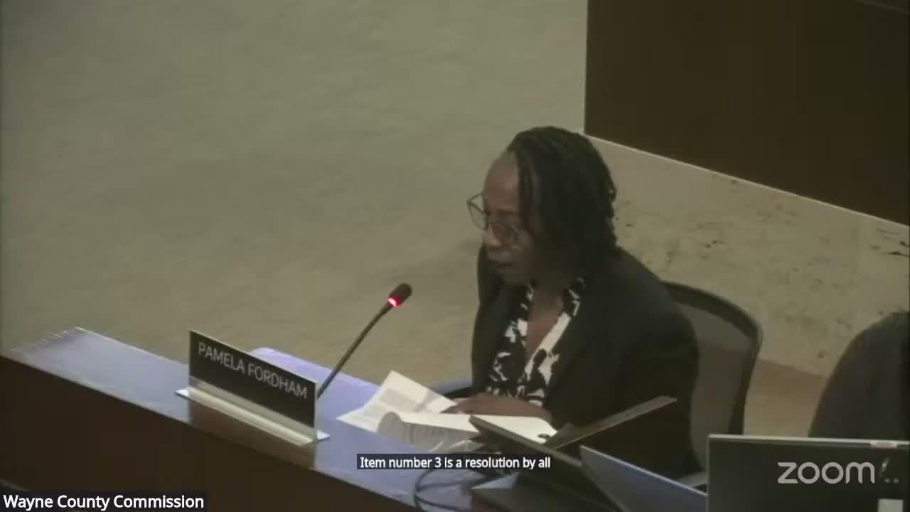 Madam Chair invited County Executive Warren Evans and a group of commissioners to present a resolution recognizing Duggan’s achievements as Detroit’s 70th mayor and for prior county service. "Nobody can take away what the city of Detroit looks like now from what the city looked like 13 years ago," County Executive Warren Evans said in praise of Duggan’s efforts to reduce blight and expand services. The resolution was moved by Commissioner Kinloch, supported by Commissioner Anderson, and approved by voice vote.