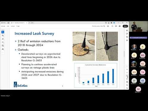SoCalGas research and development staff presented pilot results and component studies intended to detect and reduce methane emissions more cost‑effectively.