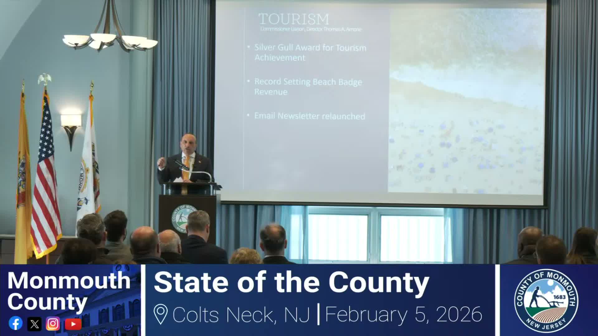 In his State of the County address, Commissioner Director Tom Arnone highlighted the county’s preservation and community-service accomplishments and outlined near-term events and programs.