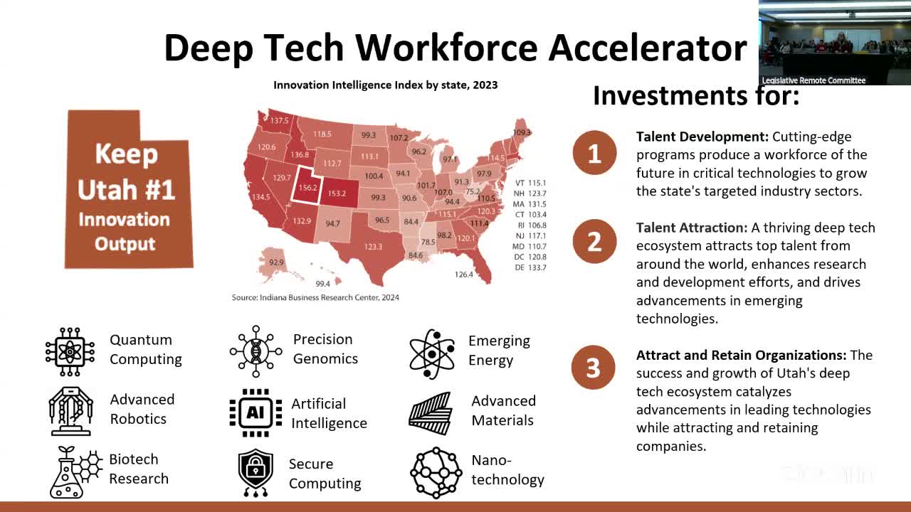 Senator Milner told the Higher Education Appropriations Subcommittee that Utah should invest $100 million in a targeted research pilot to accelerate applied research, attract matching grants and scale university innovations into businesses that create jobs.