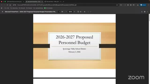 The Conewago Valley School District presented a proposed personnel budget of $62,325,977 for 2026–27, an increase of $3,595,638 over the prior year, business manager Scott Fraser told the board during a Feb. 2 personnel committee meeting. "This personnel budget is proposed at $62,325,977," Fraser said.