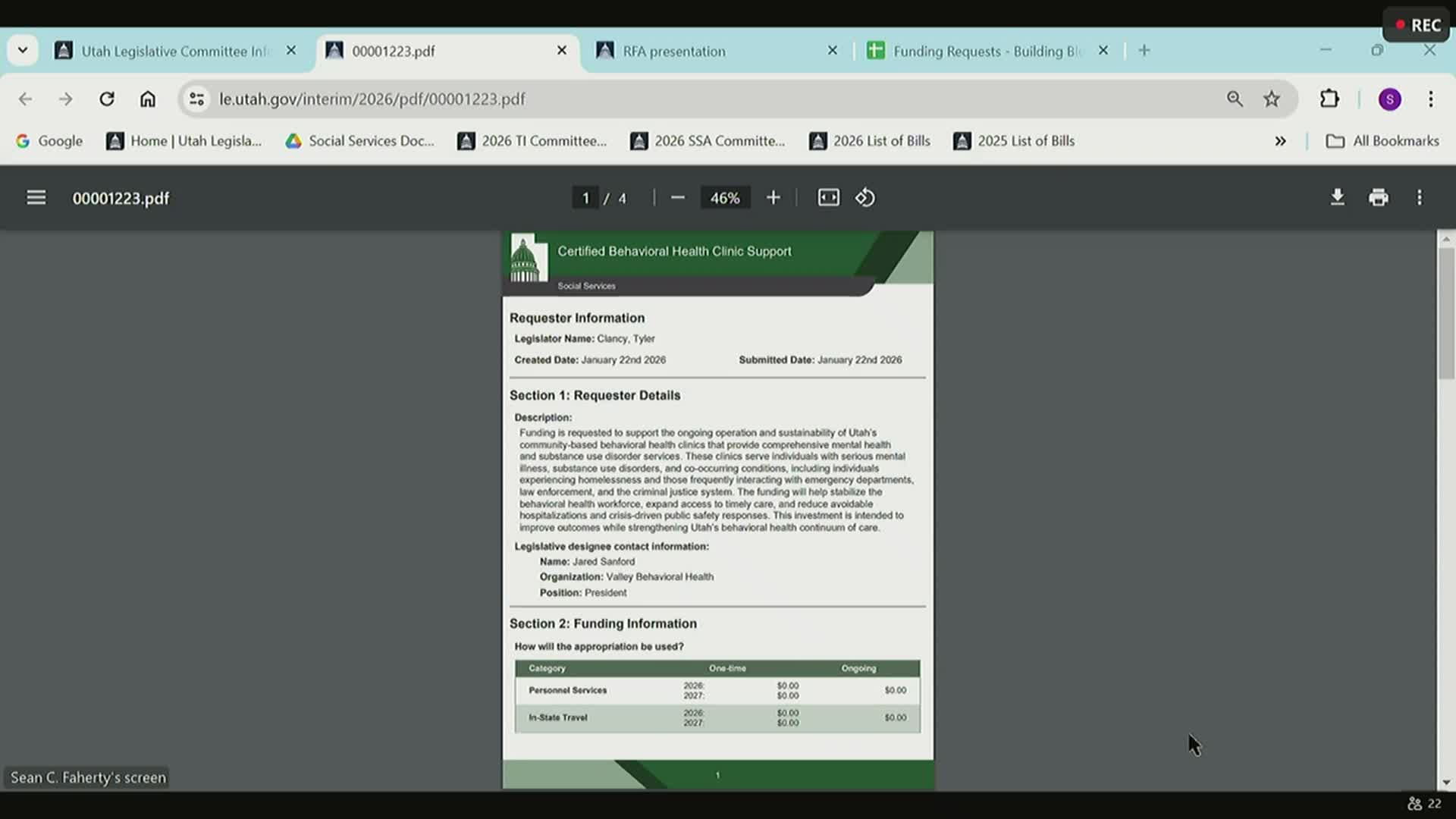 Representative Clancy presented in support of funding for Certified Community Behavioral Health Clinics (CCBHCs). Jared Sanford, CEO of Valley Behavioral Health, described CCBHCs as a federal model that sets standards for access, care coordination and crisis services and can change reimbursement toward value-based payment.
