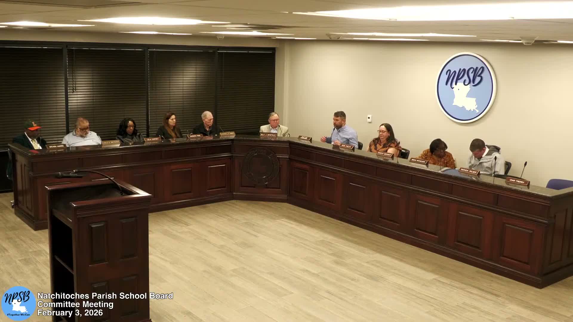 The Natchitoches Parish School Board on Feb. 3 heard a report from Superintendent Eloy that the district received four bids to provide student transportation — EchoRide, Durham, First Student and DS South — and that staff will analyze daily-rate sheets for the district’s 75 regular routes across 168 school days to estimate an annual contract cost. Eloy said the district expects to present a staff recommendation at the next board meeting and reminded members they may accept, reject or table the recommendation.
