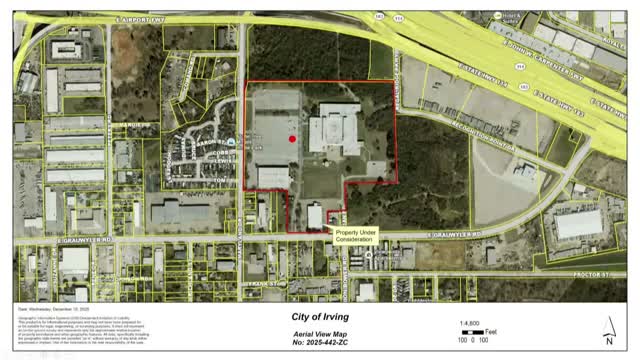 Gina Costanza Grant of the Planning Department described the former Exela Technologies site and said the applicant proposes three large buildings (roughly 128,000 square feet each) and a power‑infrastructure area that could include a substation. Grant said the applicant has committed to an air‑chilled cooling system, which staff characterized as a substantially lower‑water option than water‑cooled systems (a one‑time fill to charge cooling lines rather than continuous water use), and has proposed a landscape buffer along the western residential boundary.