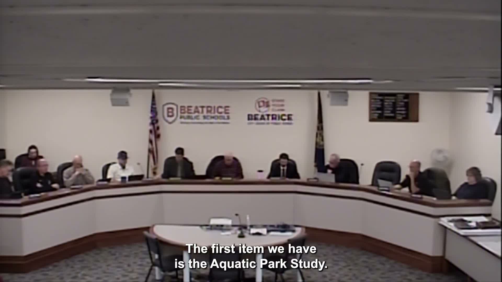 Consultant Waters Edge presented a three-tier study for the aging Beatrice pool, with Tier 1 repairs estimated at $1.5–$2 million, Tier 2 upgrades at $6–$8 million, and a full replacement (including a lazy river) at $9–$11 million; council discussed funding options and next steps.