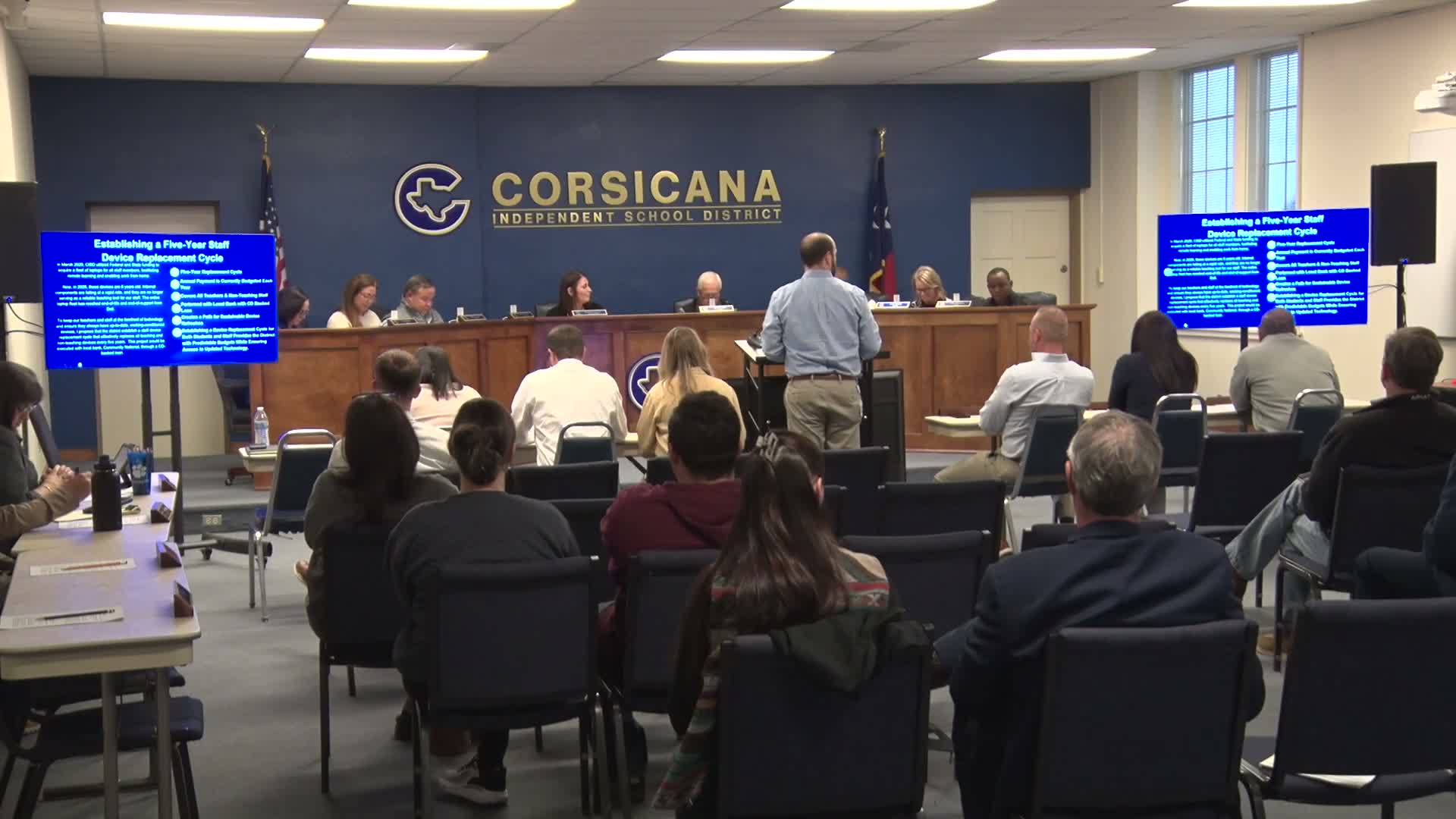 Corsicana ISD trustees approved a plan Jan. 20 to establish a five‑year device replacement cycle that will refresh staff and teacher devices districtwide, district staff said.