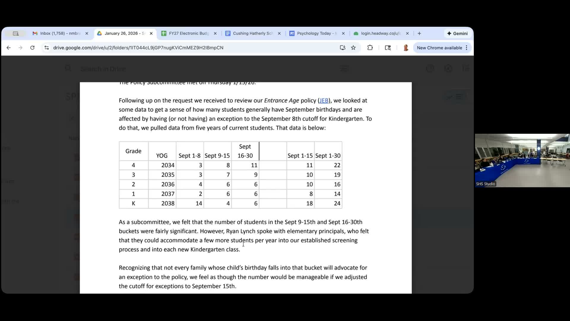 Committee members discussed proposed JED policy language to allow a waiver for children who turn 5 between Sept. 9–15, pressing for explicit screening criteria, enrollment/space limits and consistent district wording; the policy subcommittee will revise the language and return it for review.