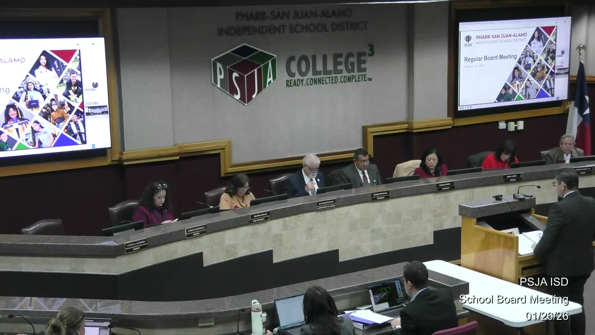 Superintendent Marquez highlighted PSJA's dual‑credit partnership with South Texas College and said 174 PSJA students completed associate degrees or workforce certificates at the December commencement, a figure he said places the district ahead of neighboring districts in dual‑credit completions. Trustee comments during the meeting cited significant family savings and the benefits of earlier college access; one board member characterized the aggregate savings for students and families as roughly $96 million, a figure stated as a speaker estimate during discussion.