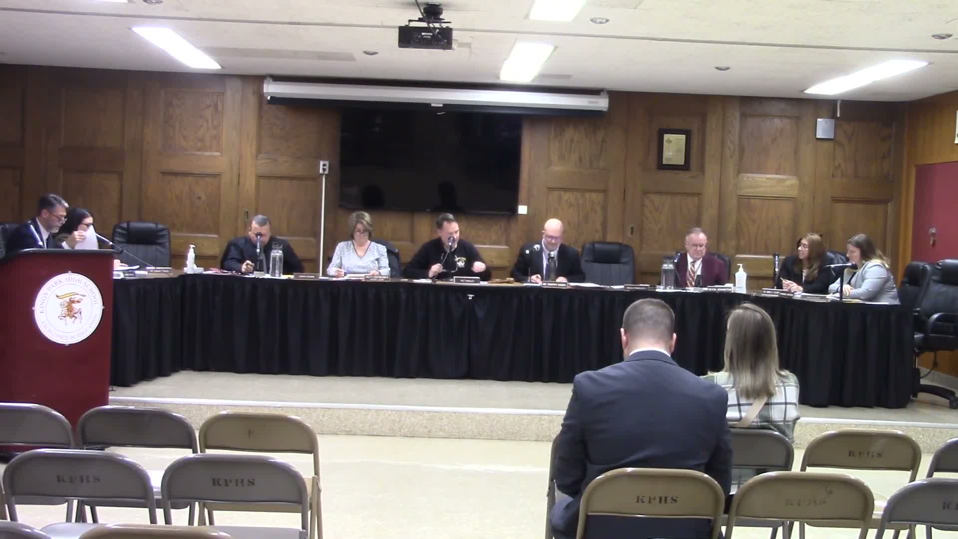 On Jan. 13, 2026, the Kings Park Central School District Board of Education adopted a revision to policy 5675 limiting seizure language for adult devices, approved change orders and field trips, accepted $20,000 in bullet aid and a single audit with no findings.