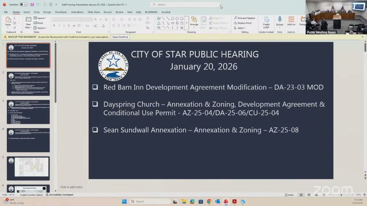 The Star City Council on Jan. 20 approved the annexation and zoning of 8.17 acres at 9701 West Beacon Light Road for Dayspring Church, adopting a development agreement and conditions to address access, landscaping, parking and future daycare operations.