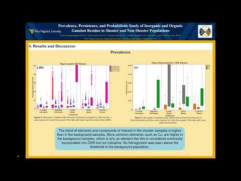 Transcript records an academic poster presentation on gunshot residue research, not a civic/government meeting; no civic actions or votes to report.
