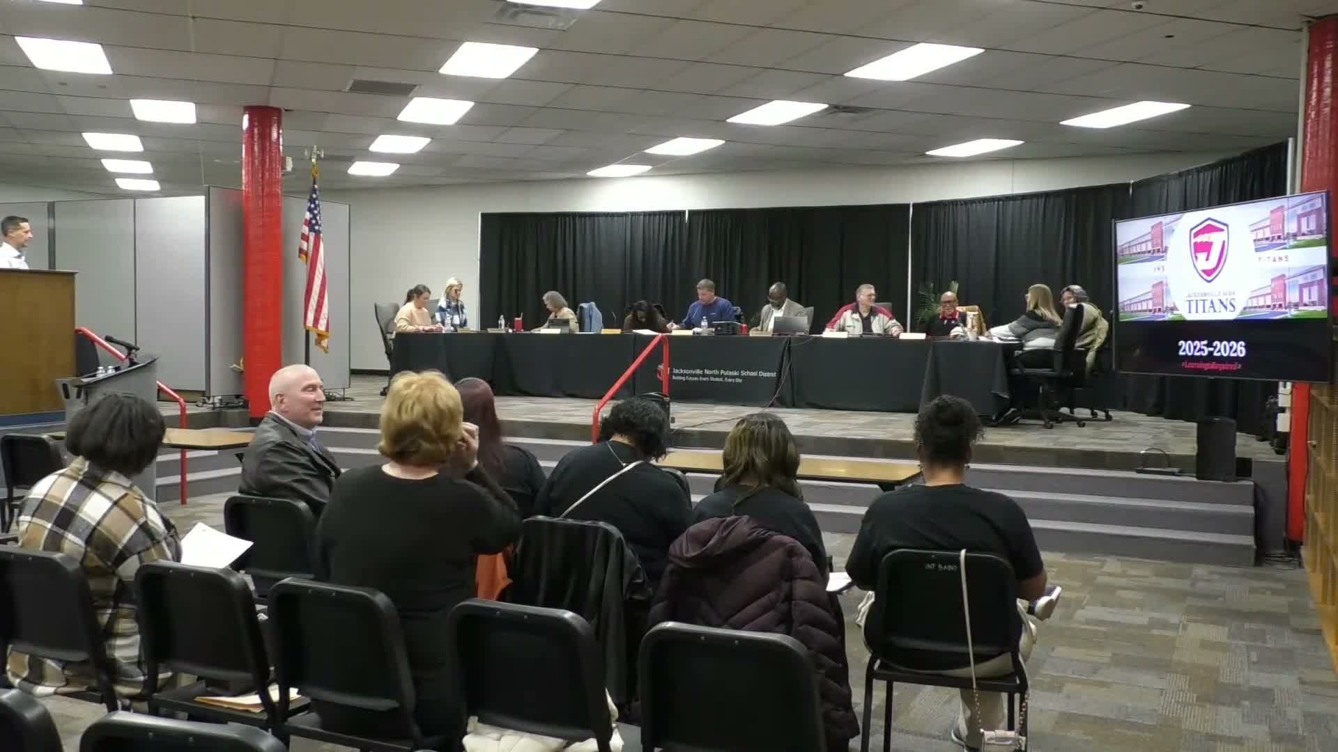 Jacksonville High School told the district board it is targeting steady gains in achievement scores, expanding concurrent‑credit pathways (criminal justice, cybersecurity and other college partnerships), and will host this year’s JNBSE Special Olympics; students and staff also highlighted leadership programs and service projects.